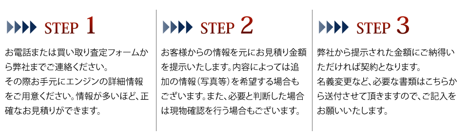エンジンの稼働時間や状態など、詳しい情報をいただければより正確な査定が可能です。